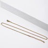 The necklace features a slender 1.2 mm box chain in a polished gold-tone finish, offering subtle shine and a clean, contemporary aesthetic. Its minimalist design makes it a perfect standalone piece or an ideal base for layering with other necklaces.